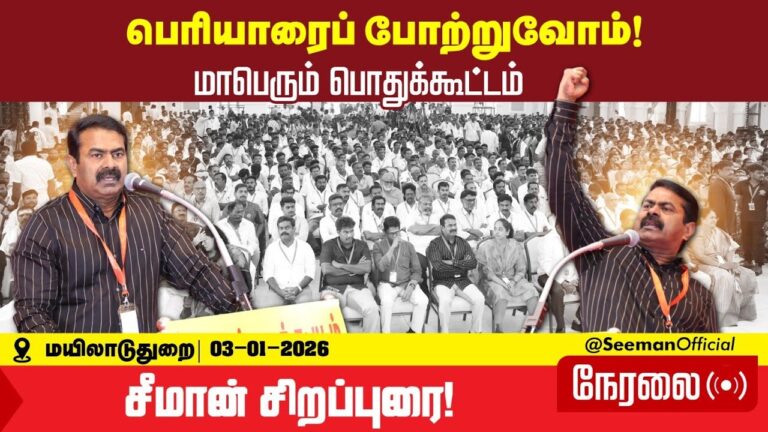 The post 🔴03-01-2026 மயிலாடுதுறை – சீமான் எழுச்சியுரை | பெரியாரைப் போற்றுவோம்| மாபெரும் பொதுக்கூட்டம் LIVE appeared first on Ramanathapuram District.